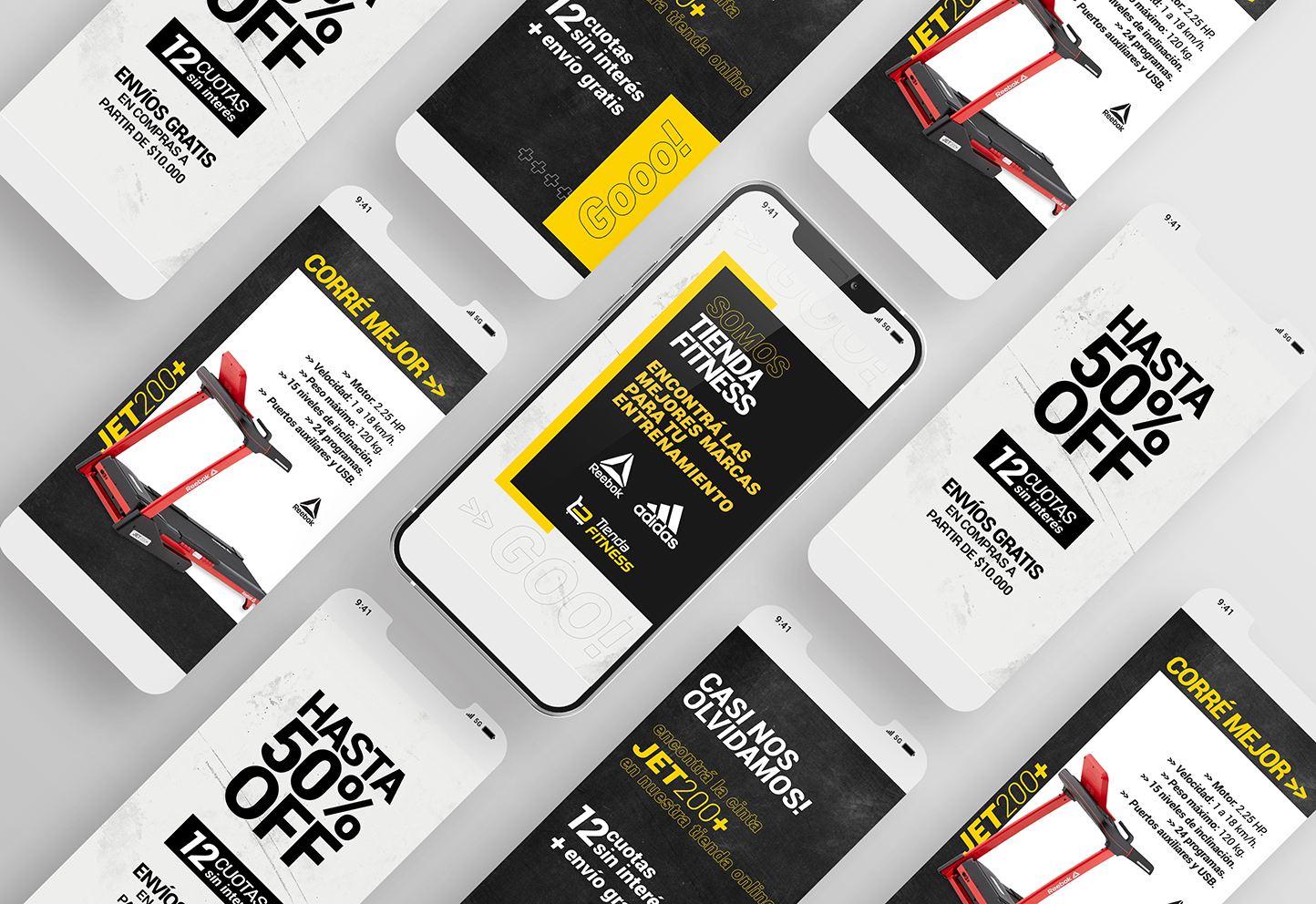Tienda Fitness, es una marca joven que comenzó a comercializar equipamiento deportivo para el hogar de Reebok y Adidas Fitness. Junto a ellos, desarrollamos en primer lugar su identidad de marca, tono comunicacional y territorios de posicionamiento. También realizamos un servicio mensual de comunicación, diseño y marketing integral, donde trabajamos en el desarrollo del sitio web, generación de contenidos creativos y servicio de community manager, creación de estrategias publicitarias, diseño de catálogos, mailings, listas de precios, manuales de productos, entre los más destacados.
